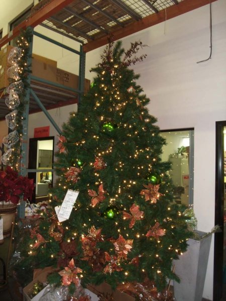 In the San Diego warehouse, we have been selling quite a few of these Oregon Pine Christmas Trees. They are available in 7.5′, 9′, 10′, 12′, and 15′. If you look at the related products to the right, click on the height you are interested in and you will be able to see the pricing. Unfortunately, we do not have pictures that are of enough quality to display in the web store. I took a couple of pictures to show what they look like. Quantities are getting pretty low. If you like this tree, you better get into the store quickly to snatch one up!