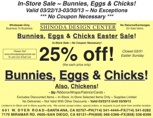 Store Special: 25% off Bunnies, Eggs, & Chicks! *Sale Starts Friday 03/22/13*