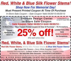 Shop Now For Memorial Day & Save…Amazing Selection Of Red, White, & Blue Silk Flower Stems To Choose From!