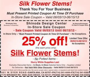 In Store Coupon: 25% off Selected Silk Flower Stems!
