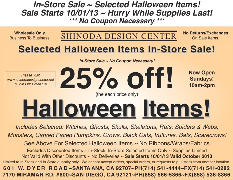 ***In-Store Halloween Sale Starts October 1st!***  New in-store special for everyone. No coupon is necessary to take advantage of this. See below for details. To print, click on the special and a printable version will load.