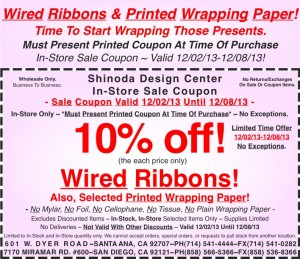 In-Store Coupon: 10% off Wired Ribbons & Printed Wrapping Paper!