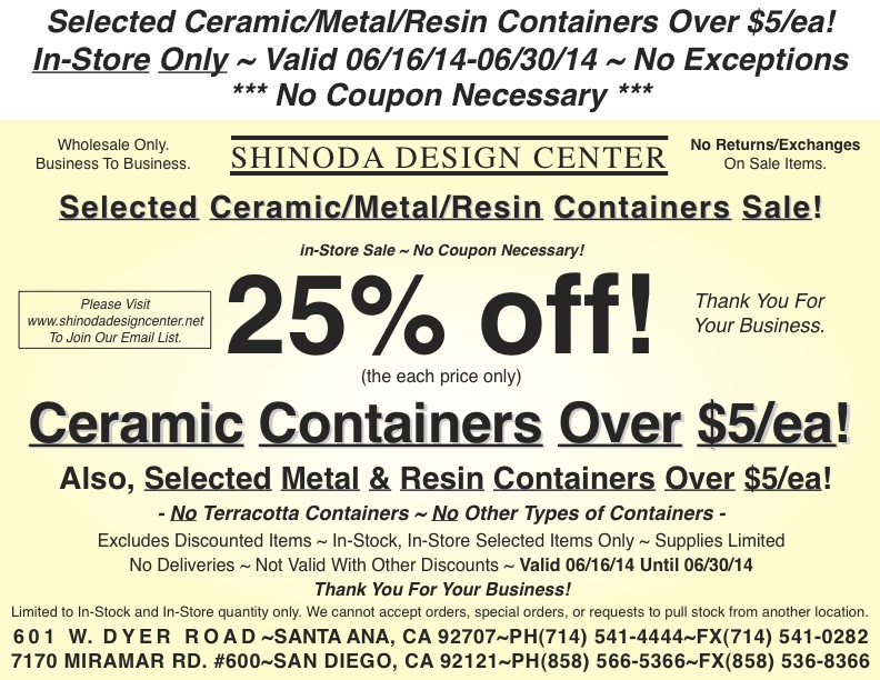 Store Special: 25% off Selected Ceramic/Metal/Resin Containers Over $5/ea!