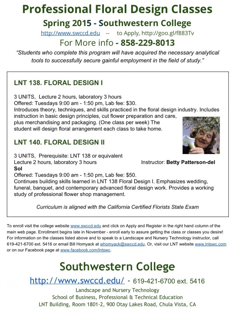 Southwestern College Floral Design Classes ~ Spring 2015