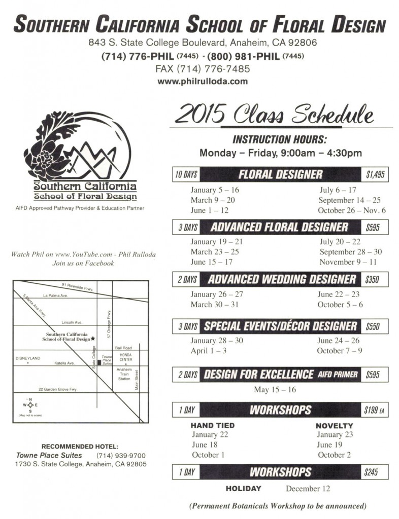 Southern California School Of Floral Design ~ 2015 Class Schedule