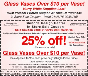 Come take advantage of this week’s in-store coupon to get the perfect Glass Vases Over $10 per Vase for Valentine’s & Upcoming Events!