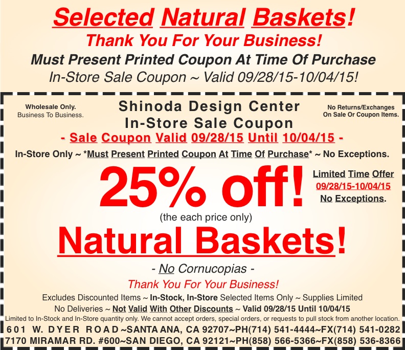 New sale coupon for you to use in-store. Make sure you print it out and bring it in to use. To print, click on the coupon and a printable version will load. We will only accept printed coupons. Coupons presented via cellphone, tablet, or any other means will not be accepted.