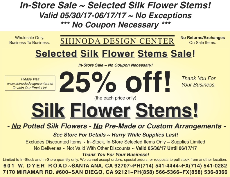 In-Store Sale Starts 05/30/17 ~ *No Coupon Necessary*
