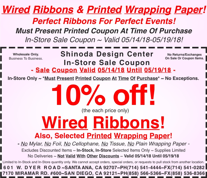 In-Store Coupon: 10% off Wired Ribbons & Printed Wrapping Paper!