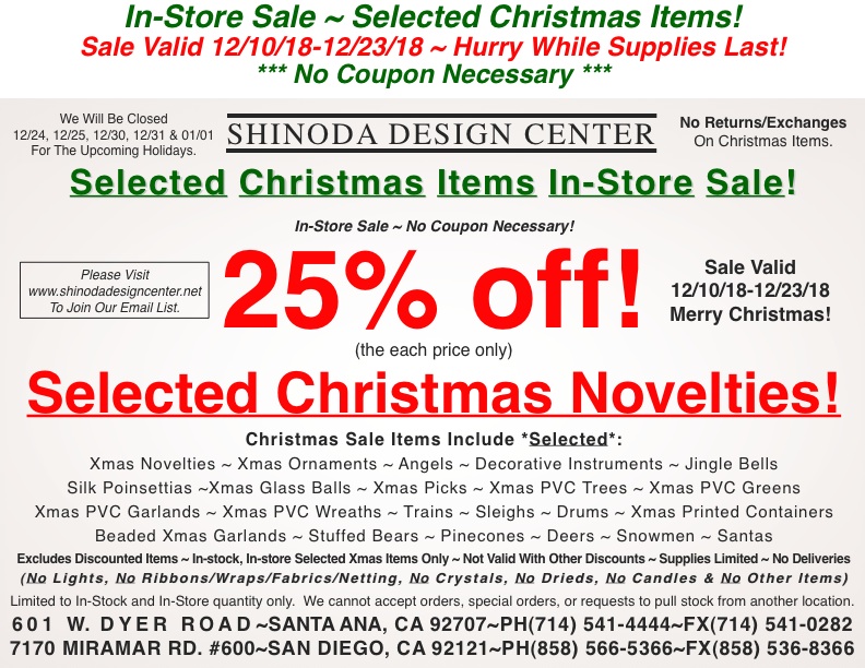 This entry was posted in 2018, Christmas Sale, Sale, San Diego, Santa Ana, Shinoda Design Center and tagged , , , . Bookmark the permalink.