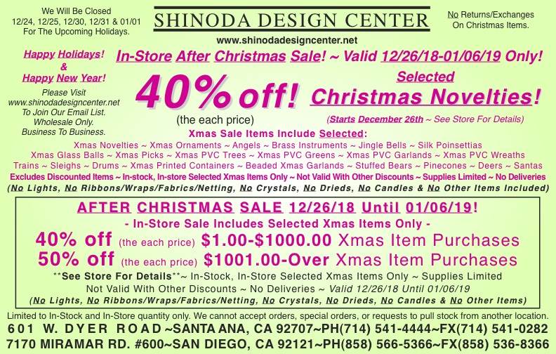 After Christmas Store Special: 40% off Selected Christmas Items! In-Store Sale Starts 12/26/18 @ 8am!