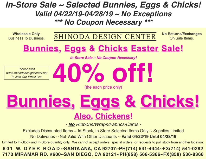 *After Easter* In-Store Sale 04/22/19-04/28/19 ~ *No Coupon Necessary*