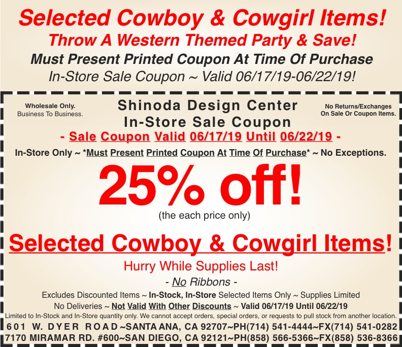 New sale coupon for you to use in-store. Make sure you print it out and bring it in to use. To print, click on the coupon and a printable version will load. We will only accept printed coupons. Coupons presented via cellphone, tablet, or any other means will not be accepted.