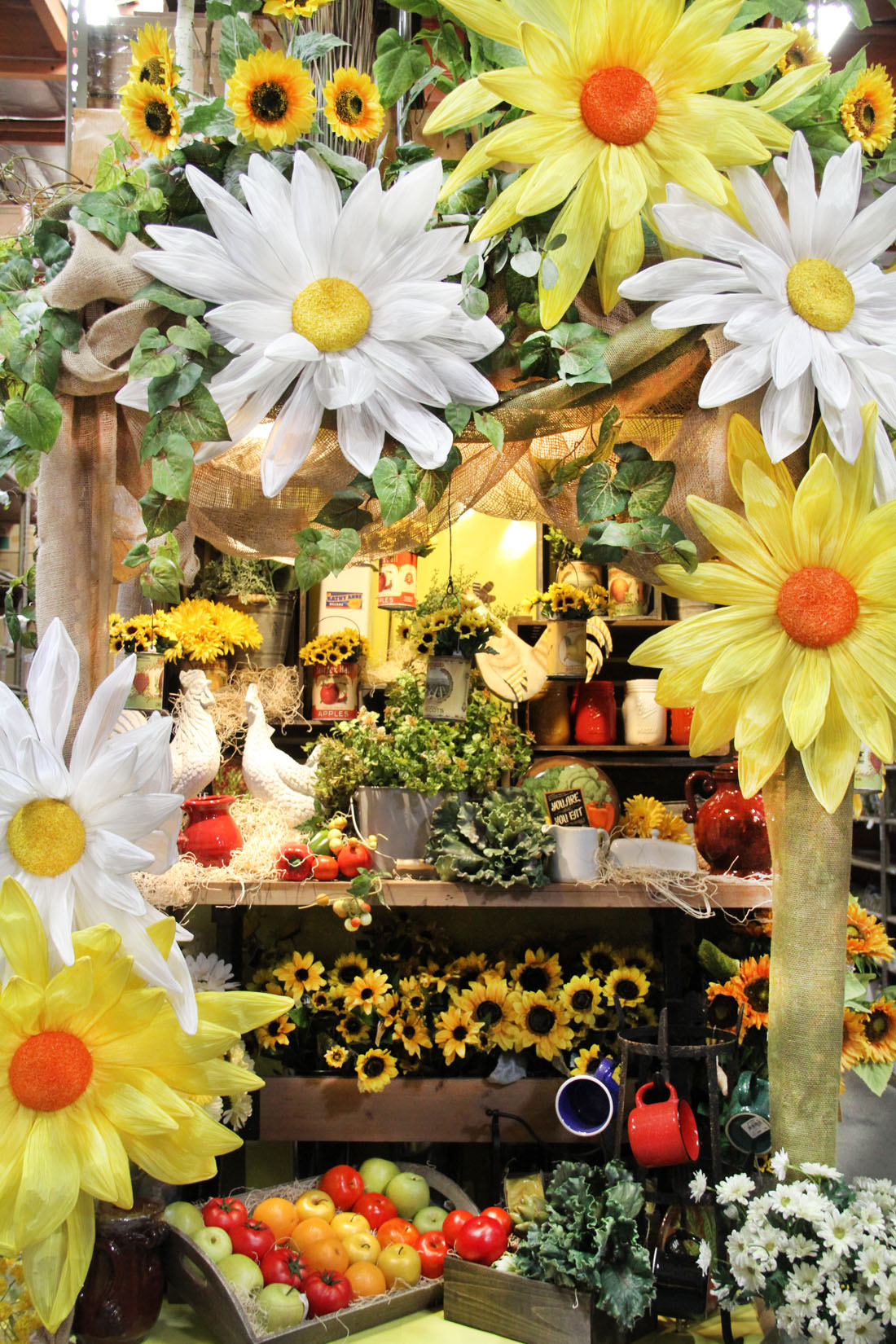 We absolutely love the plethora of colors at outdoor markets! They are a great inspiration to host a Farmer’s Market theme party. Your guests will enjoy an afternoon of delicious fruits & vegetables while being surrounded by beautiful flowers. Come see our giant paper flowers, decorative mason jars, fruits, chickens, & sunflowers!