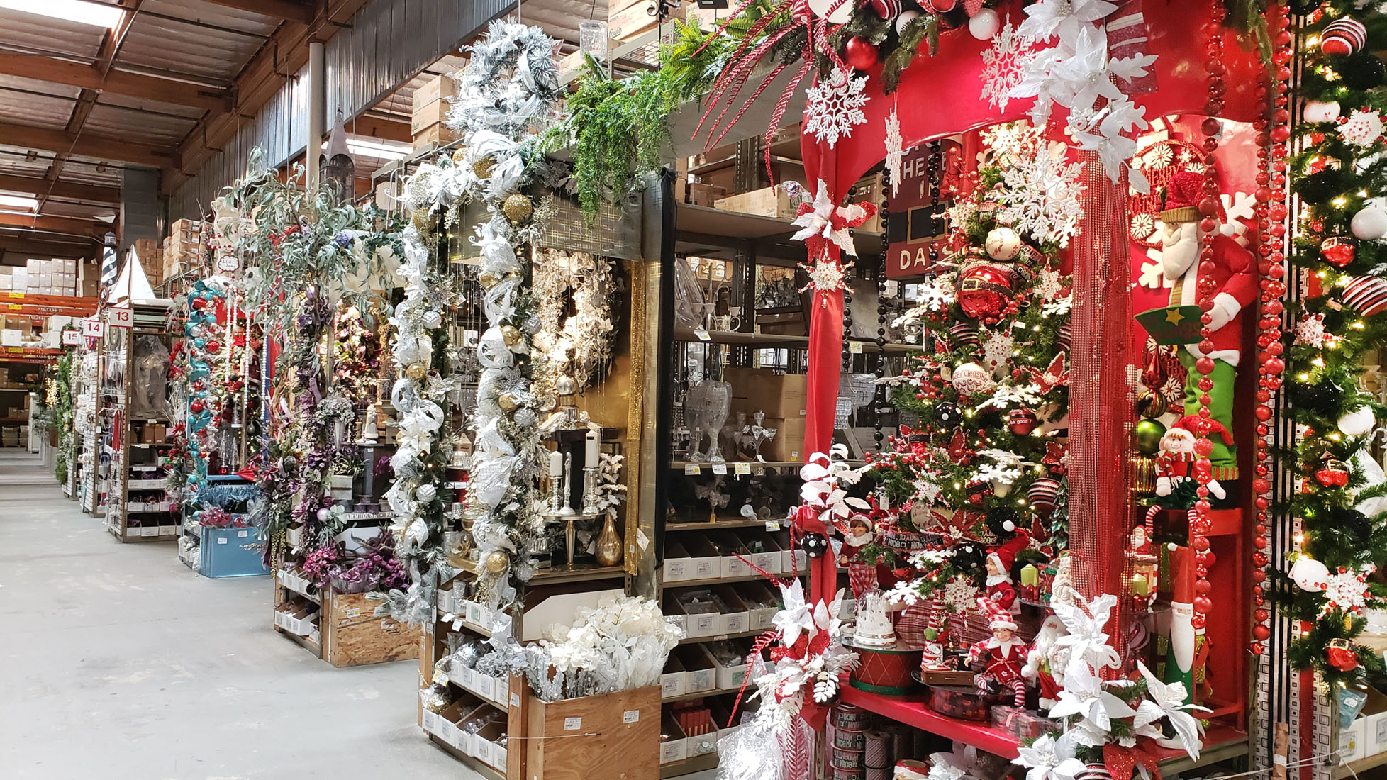 Truckloads of beautiful holiday decorations are arriving, and our amazing design teams are spreading holiday joy around our warehouses!