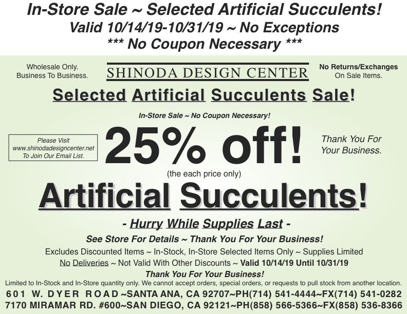 Store Special: 25% off Artificial Succulents! Also, Artificial Cactus & Potted Artificial Succulents!