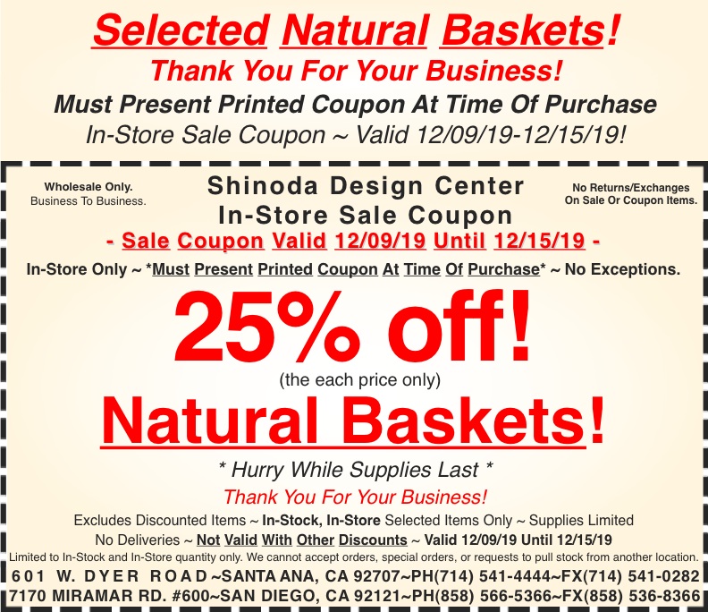 In-Store Coupon: 25% off Natural Baskets!