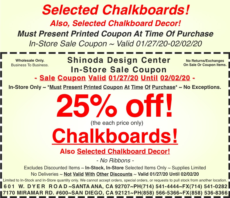 New sale coupon for you to use in-store. Make sure you print it out and bring it in to use. To print, click on the coupon and a printable version will load. We will only accept printed coupons. Coupons presented via cellphone, tablet, or any other means will not be accepted.