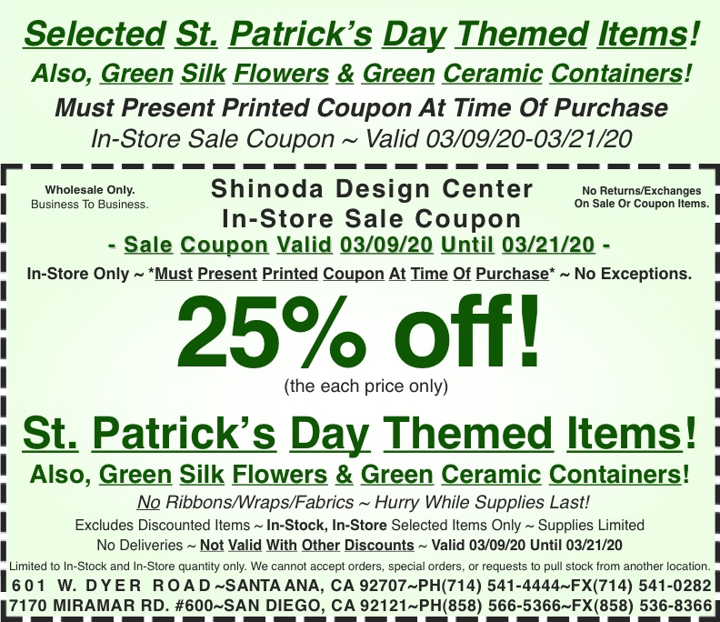 New sale coupon for you to use in-store. Make sure you print it out and bring it in to use. To print, click on the coupon and a printable version will load. We will only accept printed coupons. Coupons presented via cellphone, tablet, or any other means will not be accepted.