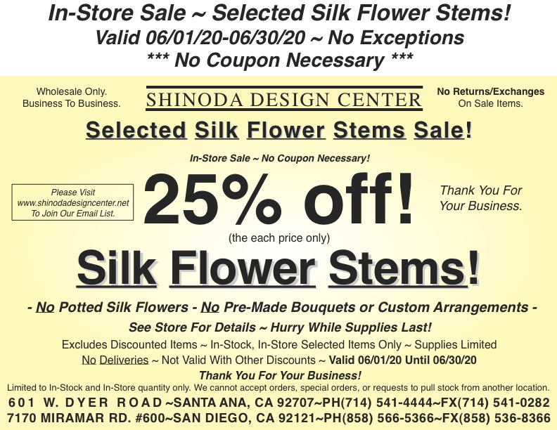 In-Store Sale Starts 06/01/20 ~ *No Coupon Necessary*