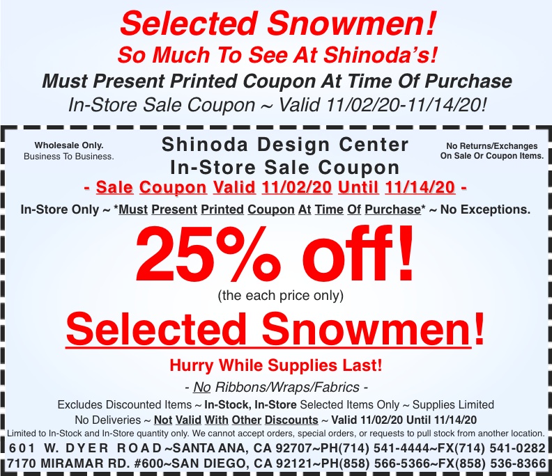 In-Store Coupon: 25% off Selected Snowmen!