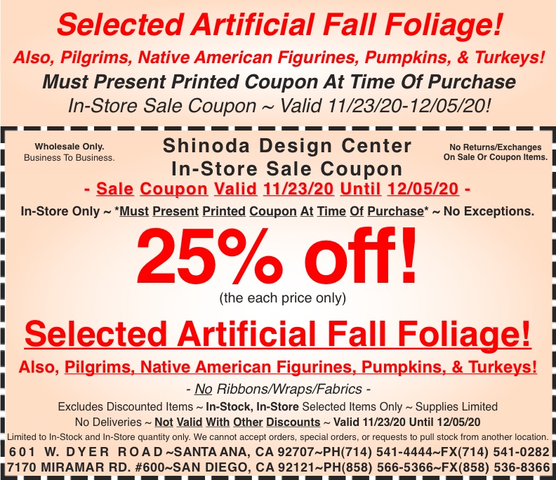 New sale coupon for you to use in-store. Make sure you print it out and bring it in to use. To print, click on the coupon and a printable version will load. We will only accept printed coupons. Coupons presented via cellphone, tablet, or any other means will not be accepted.