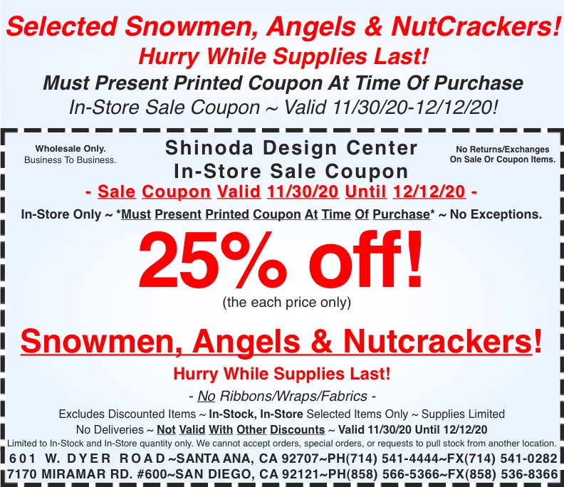 New sale coupon for you to use in-store. Make sure you print it out and bring it in to use. To print, click on the coupon and a printable version will load. We will only accept printed coupons. Coupons presented via cellphone, tablet, or any other means will not be accepted.