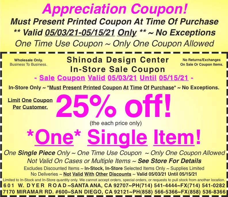 This entry was posted in 2021, Coupon, San Diego, Santa Ana, Shinoda Coupon, Shinoda Design Center, Shinoda Displays and tagged , , , , , , , , . Bookmark the permalink.