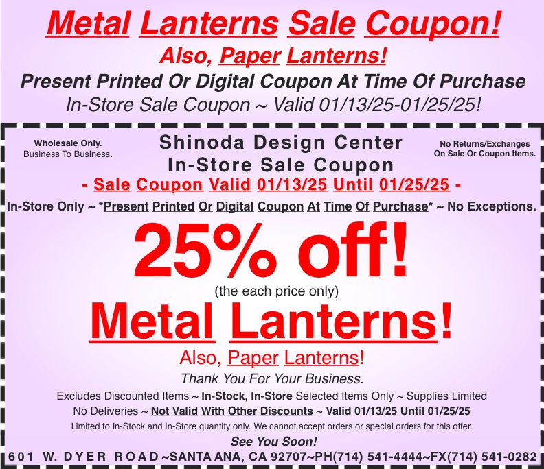 In-Store Coupon: 25%off Metal Lanterns! Also, Paper Lanterns!