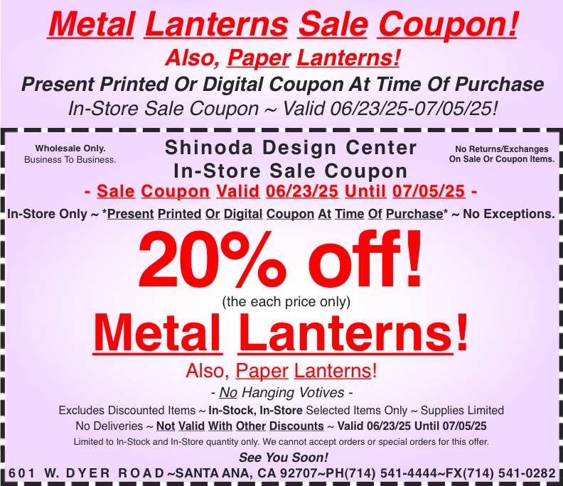 New sale coupon for you to use in-store. Present printed or digital coupon at time of purchase. To print, click on the coupon and a printable version will load.
