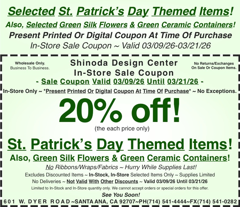 New sale coupon for you to use in-store. Present printed or digital coupon at time of purchase. To print, click on the coupon and a printable version will load.