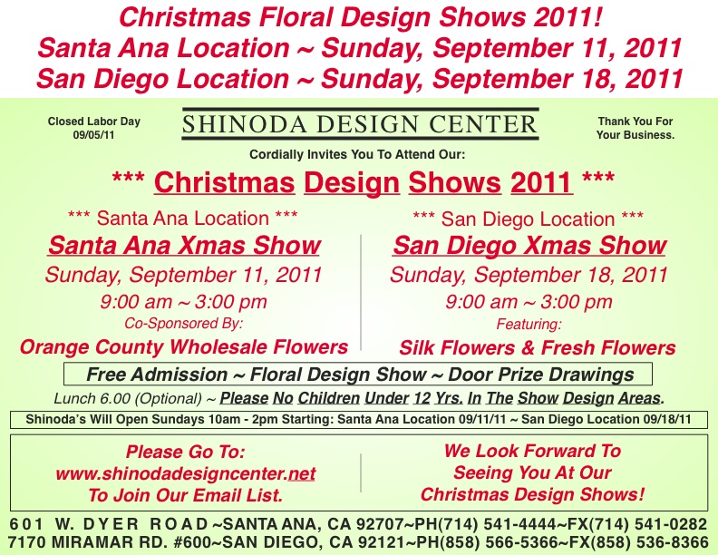 - Our show in Santa Ana is co-sponsored by Orange County Wholesale Flowers, a wholesale fresh flower store next door. If you’re looking for fresh flowers for your new creation, be sure to stop by.